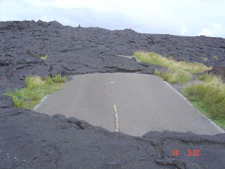 The picture at the top is astreet in Thailand, while the bottom picture is a lava covered road on the Island of Hawaii.